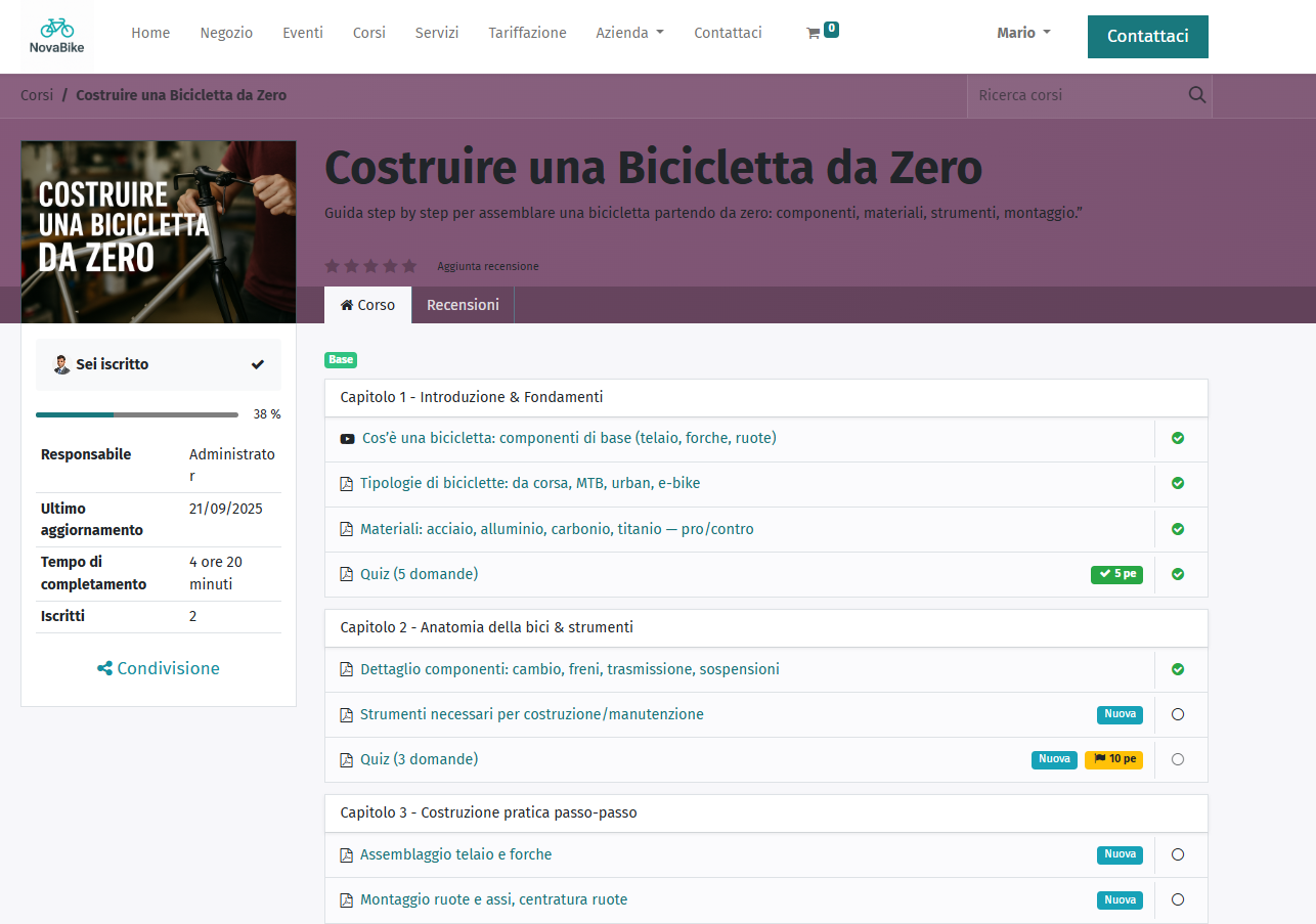 Puoi costruire corsi completi utilizzando video, documenti, presentazioni e PDF. I contenuti sono organizzati in sezioni e lezioni, così i partecipanti seguono percorsi chiari e progressivi. Ogni corso può essere aperto a tutti, limitato a un gruppo specifico o reso a pagamento. Inoltre, la piattaforma è ottimizzata per l’uso da smartphone e tablet, permettendo di studiare ovunque.