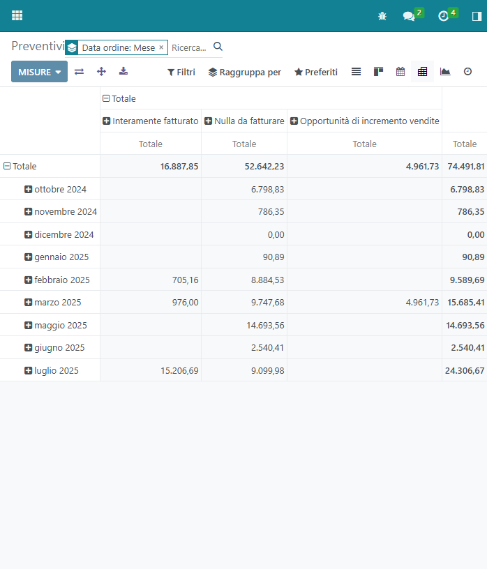 Con dashboard e report integrati monitori performance, margini e volumi. Le previsioni si aggiornano automaticamente in base a ordini, pipeline e storico, così hai sempre una visione chiara di cosa aspettarti nei prossimi mesi.
